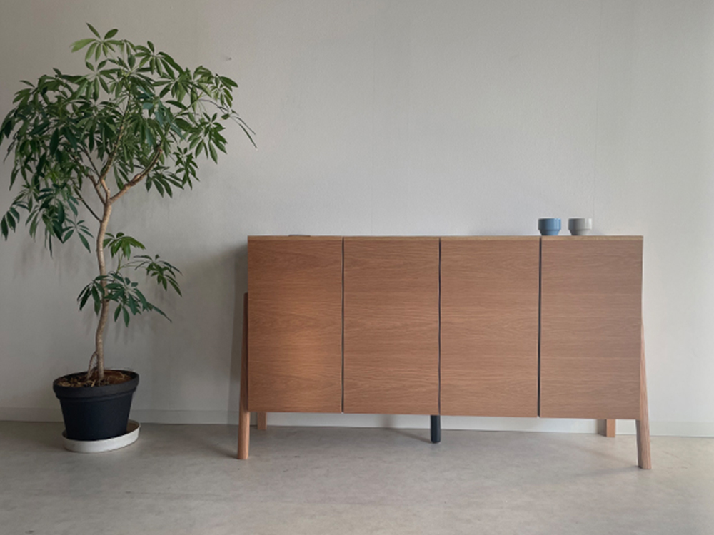 側面に個性的な「A」形の無垢材の脚をアクセントとして加え