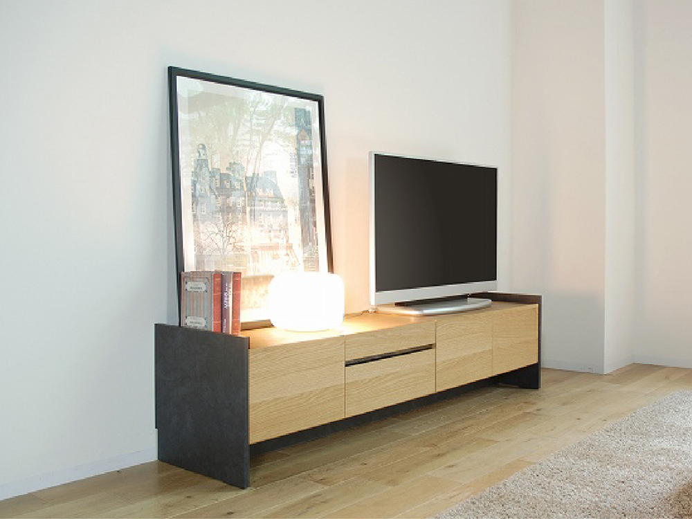 箱を挟むように作られた造形により、置き家具では難しいとされる浮遊感を表現。