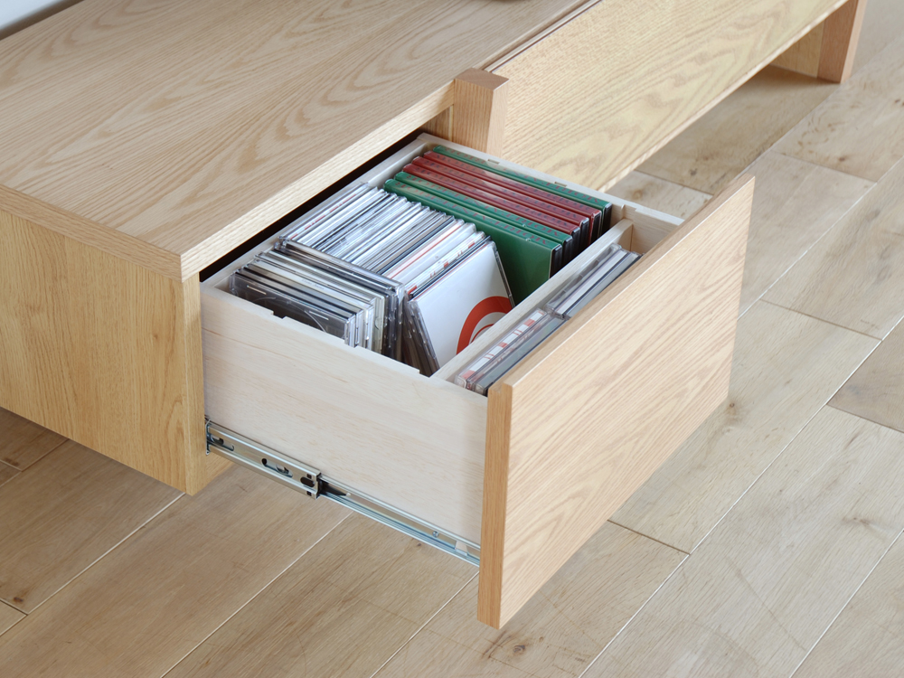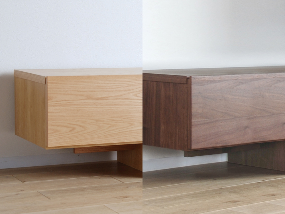 フロートデザインで抜け感があり、木質感をしっかり感じられるスクエアで