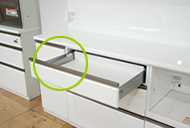 引出しの取外し・取付け方法については、商品に付属してある「商品取扱説明書」をご覧いただくか、こちらの「引出の取外し方・取付け方」をご覧ください。