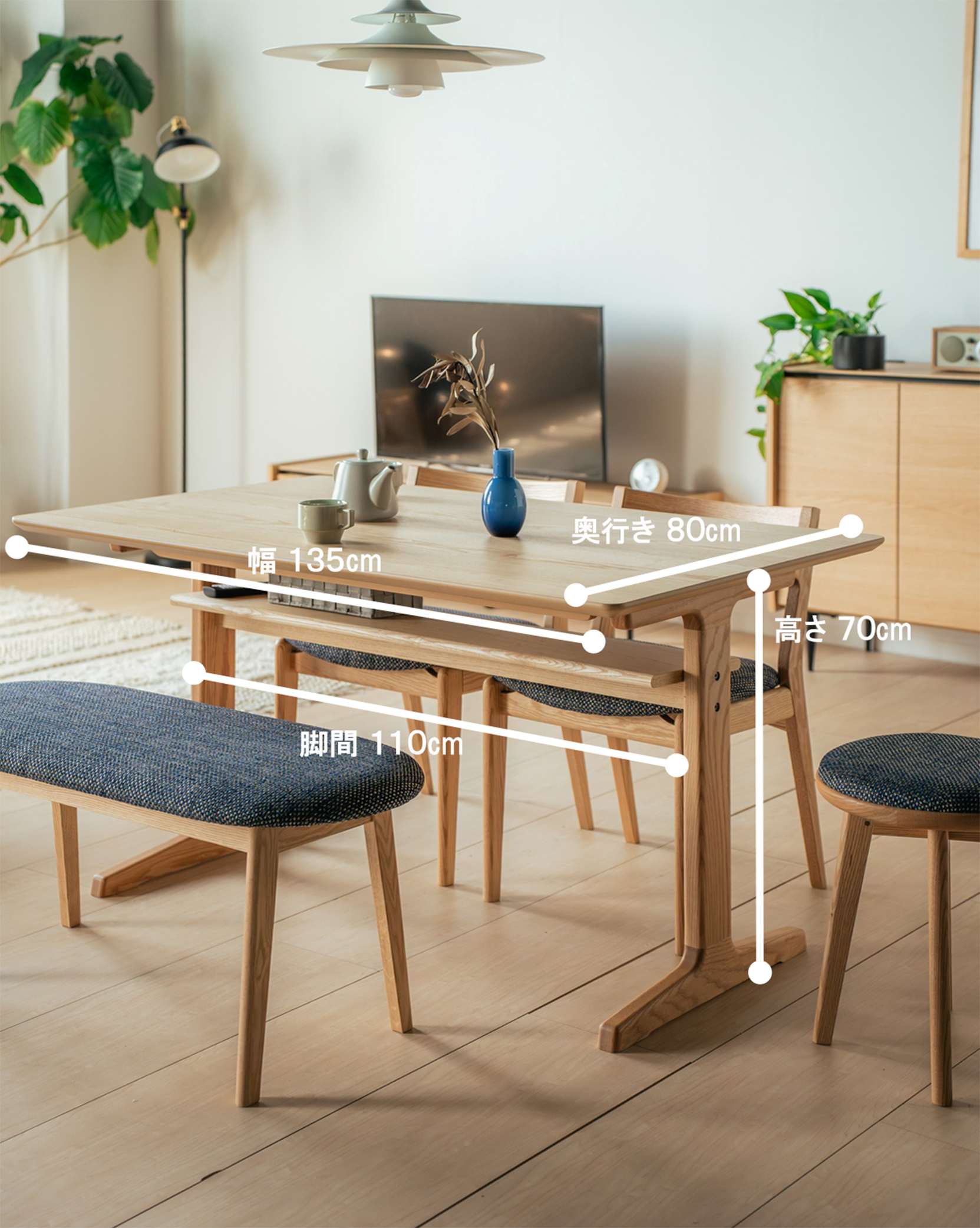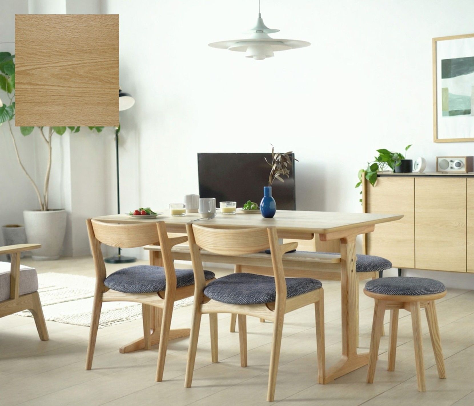 ダイニングに、自然素材ならではの存在感をもたらします。