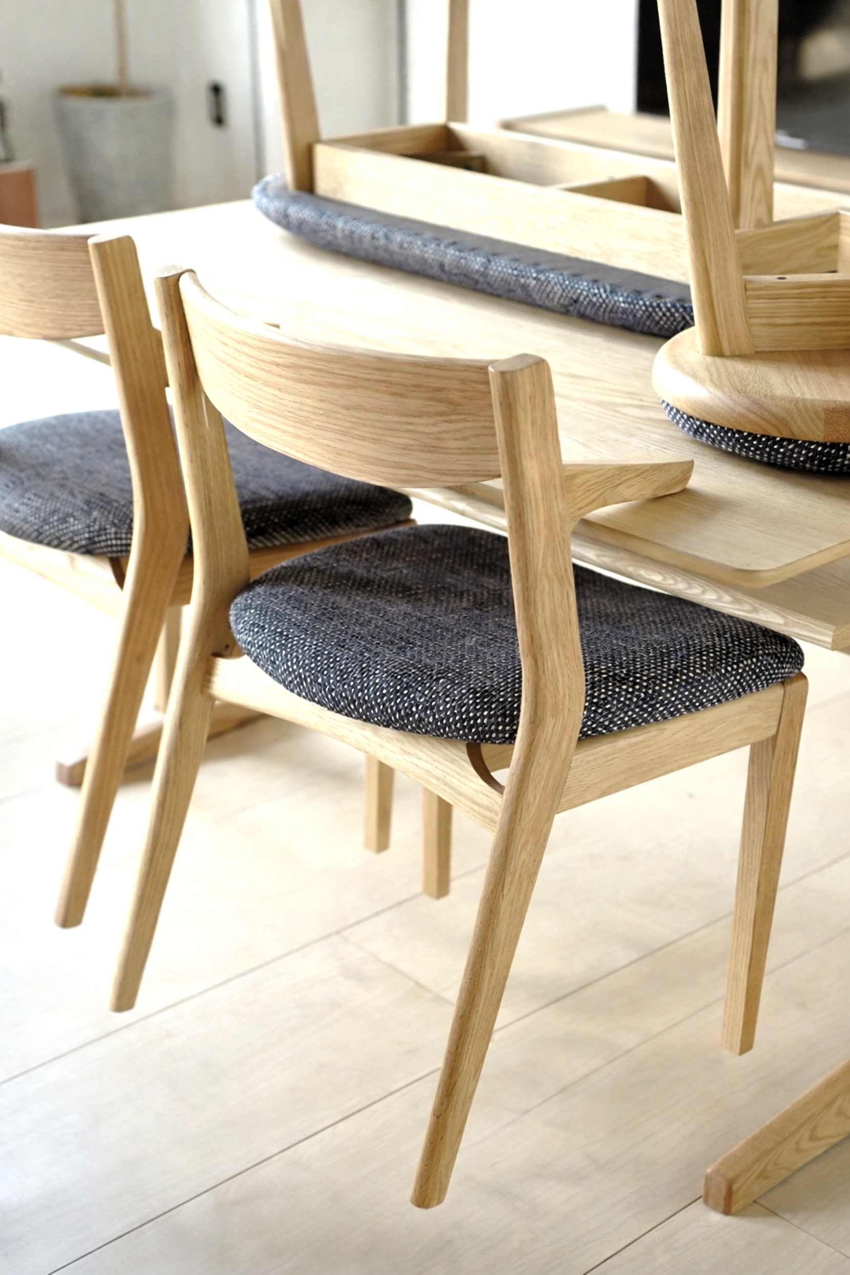 シンプルな内装に一脚置くだけで、ダイニングがぐっと華やぎます。