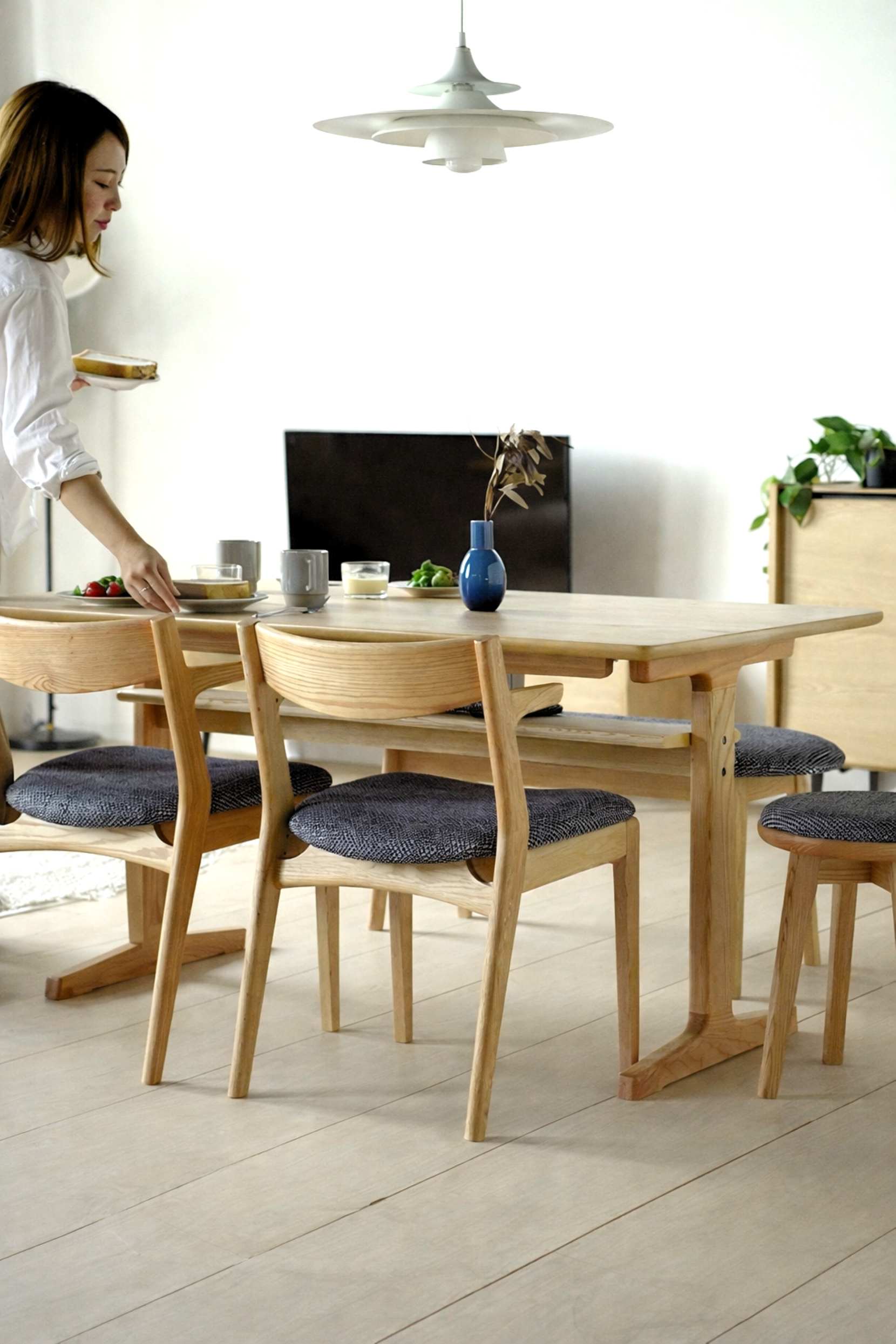 ダイニングに、自然素材ならではの存在感をもたらします。